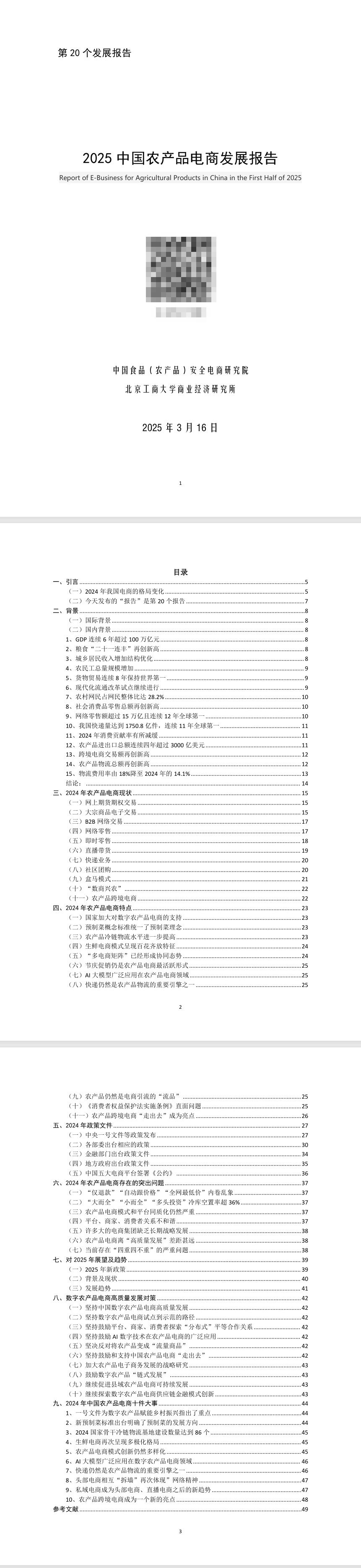 3月16日,“2025中国农产物电商高层研讨会”正在工商大学举行,会上,工商大学贸易经济研究所所长洪涛传授,代表中国食物(农产物)平安电商研究院发布了《2025年中国农产物电商成长演讲》,是第20个成长演讲。《演讲》采纳“引言、布景、现状、特征、政策、问题、趋向、对策、构成独具特色的《2025中国农产物电商成长演讲》。《演讲》指出,2024年中国农产物电商超额完成了地方网信办、农业农村部、国度成长委、工业和消息化部、国度村落复兴局结合印发《2024年数字村落成长工做要点》的方针,出格是跨越“农产物电商收集零售额冲破6300亿元”的方针,达到6797。8亿元,同比增加15。8%,持续三年跨越打算方针。
