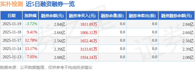 实朴检测(301228)11月19日从力资金净卖出111亿元